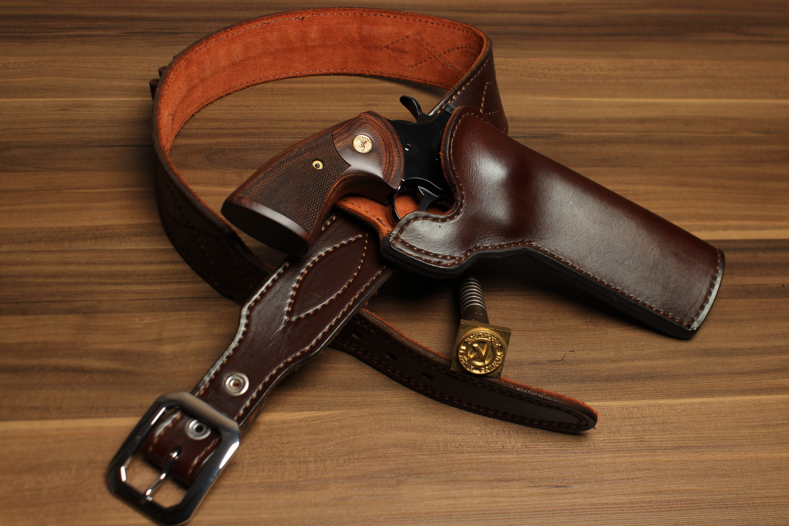 The crossdraw rig is also fully lined and has a deep hand molded finish for an accurate fit to your gun. It can be made for both single and double action revolvers.
