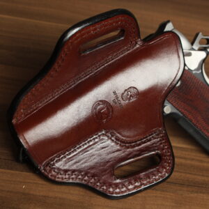We start by cutting from the best part of the hide.  We then hand dye the holster to ensure a rich deep color that will accent your firearm.  All our holsters are sewn using five cord bonded polyester thread and double stitched in all critical areas.  The heavy weight construction also makes sure the holsters stay open when re-holstering. Each holster is then hand molded for a perfect fit. The edges are then sanded and hand burnished to a smooth glossy finish.  This helps prevent moisture from entering the edges of the leather.  They are then polished and finished with a clear coating to protect the finish.