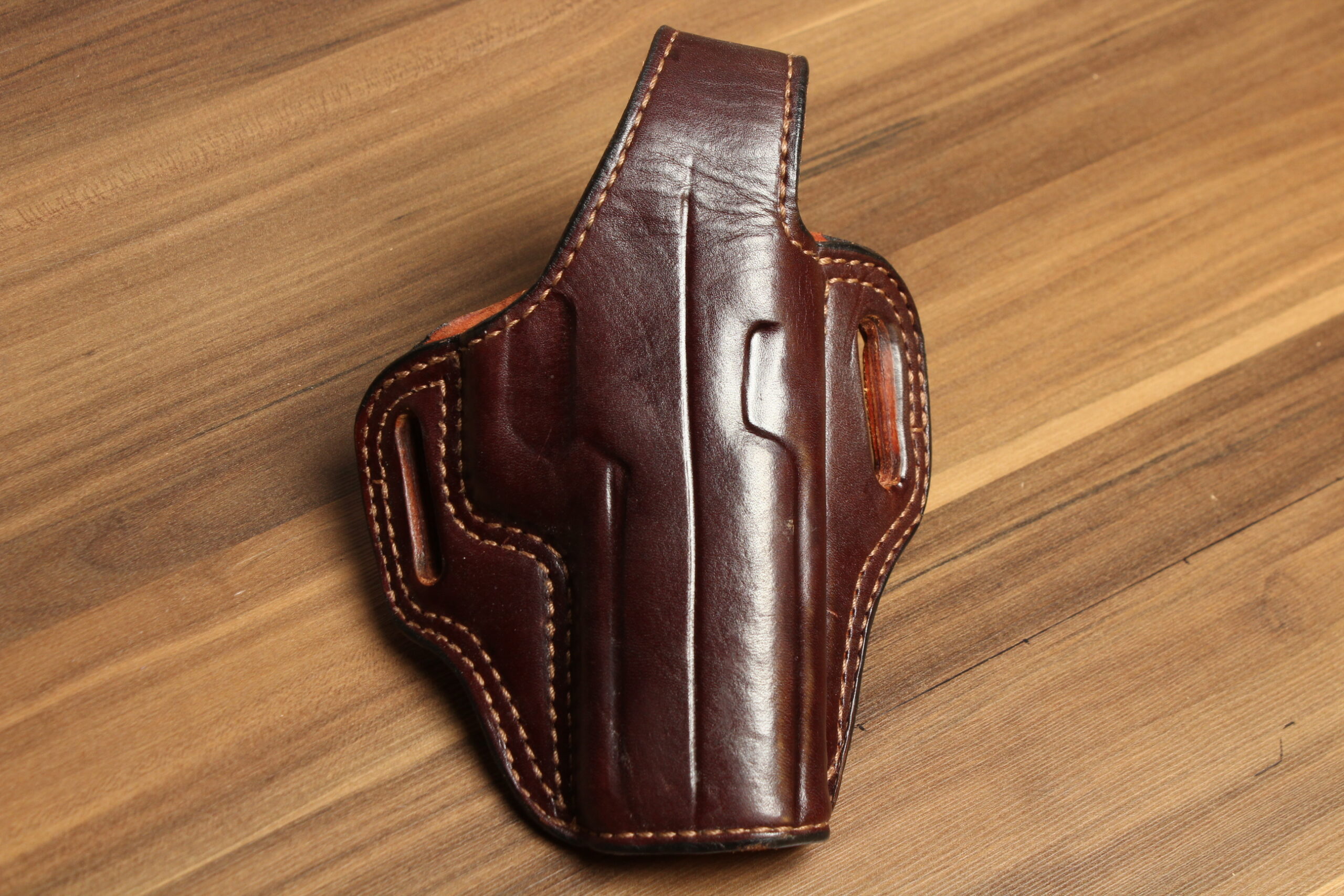 We start by cutting from the best part of the hide. We then hand dye the holster to ensure a rich deep color that will accent your firearm. All our holsters are sewn using seven cord bonded nylon thread and double stitched in all critical areas. Each holster is then hand molded for a perfect fit and contoured to the hip for comfort. The edges are then sanded and hand burnished to a smooth glossy finish. This helps prevent moisture from entering the edges of the leather. They are then polished and finished with a clear coating to protect the finish. Our concealed carry designs secure your firearm while still providing instant access when needed. Our holsters are built to last a lifetime.