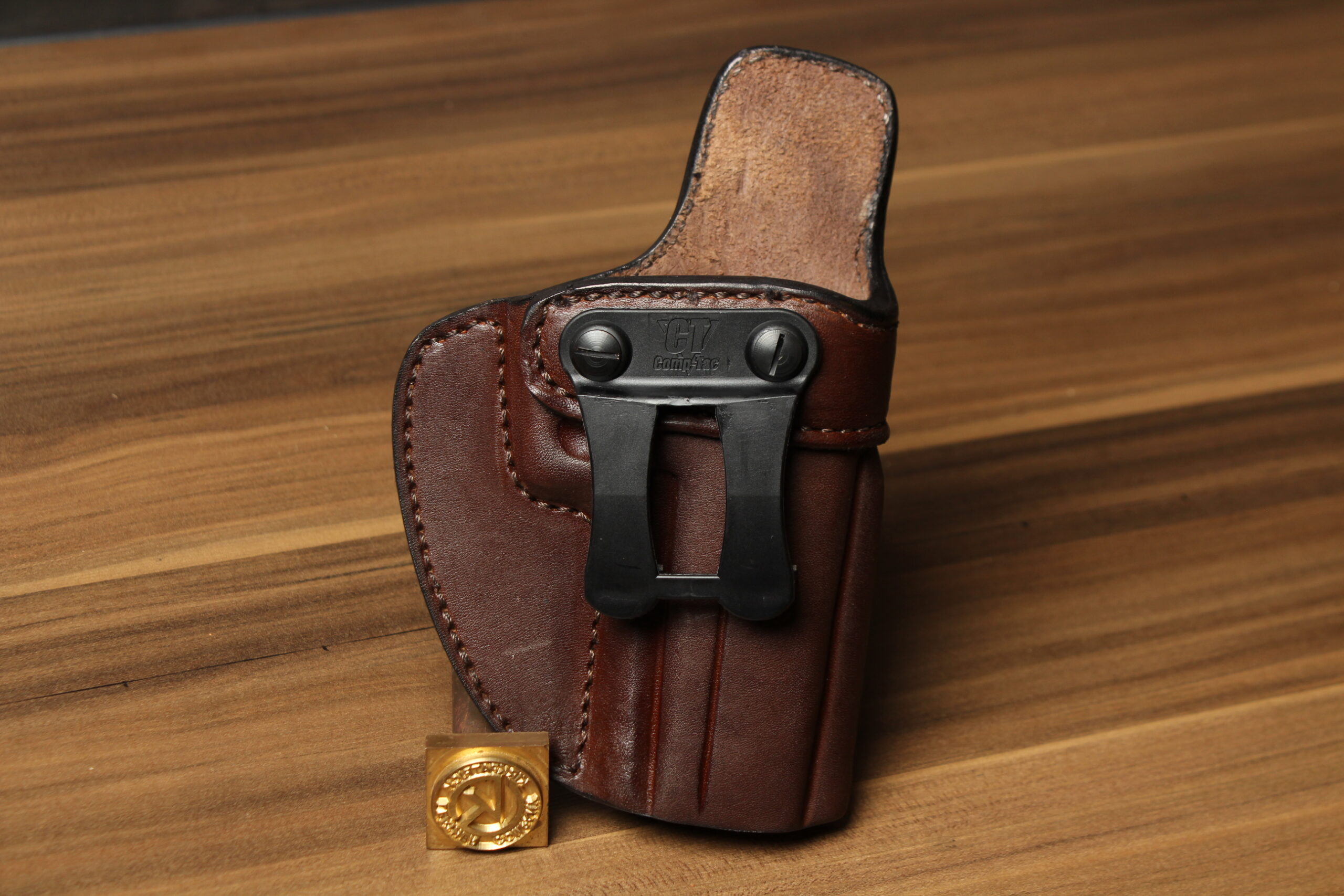 When concealment with light cover is a priority, inside-the-waistband holsters lead the way. The model T-CC was created so that its IWB design would not compromise the pistol’s accessibility. We incorporated a leather shirt guard for comfort, but designed it so it would not interfere with the draw. A slight angle on the holster narrows the profile of the pistol, making it more comfortable for all day use.