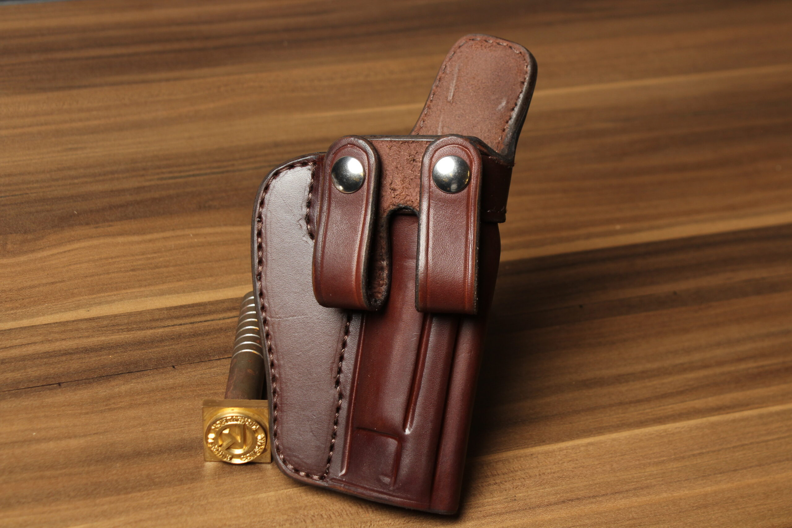 We start by cutting from the best part of the hide. We then hand dye the holster to ensure a rich deep color that will accent your firearm. All our holsters are sewn using seven cord bonded nylon thread. Each holster is then hand molded for a perfect fit and contoured to the hip for comfort. The edges are then sanded and hand burnished to a smooth glossy finish. This helps prevent moisture from entering the edges of the leather. They are then polished and finished with a clear coating to protect the finish. Our concealed carry designs secure your firearm while still providing instant access when needed. Our holsters are built to last a lifetime.